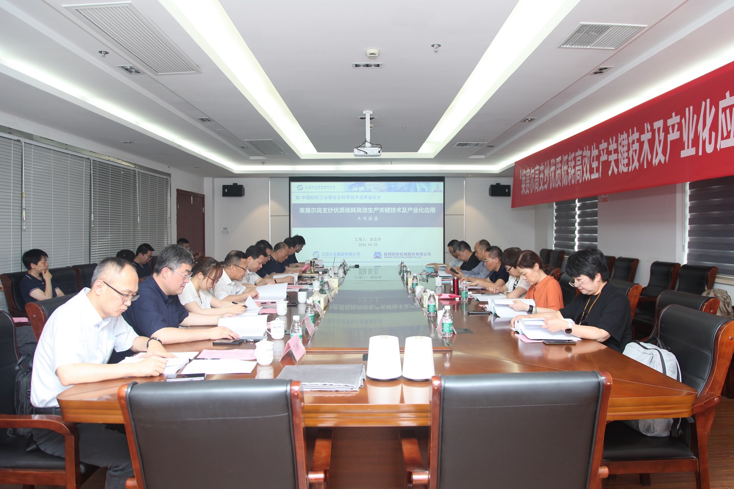 2024年6月23日,中国纺织工业联合会在江苏省南通市组织召开了由永利yl23411、经纬纺织股份有限公司共同完成的中国纺织工业联合会科技指导性项目“莱赛尔高支纱优质低耗高效生产关键技术及产业化应用”科技成果鉴定会。 鉴定委员会专家听取项目完成单位的研究工作报告、技术报告、用户使用报告和查新报告等,审查相关资料,并考察生产现场。 项目从优质高效、柔性低耗、减少用工、质量追溯等方面着手,研发出莱赛尔高支纱优质低耗高效生产关键技术,并实现产业化。项目中提出不同莱赛尔纤维混配使用及比例优化的方法,开发轻定量粗纱条干均匀、专用紧密赛络纺装置、长车集聚负压和车弄面温湿度均匀调控等技术,保证莱赛尔高支纱的高品质稳定生产。 同时,还研发出一轨双机抓棉系统、大容量粗纱中转系统、残剩纤维自动收集梳理再利用系统,以及笛管风压、车间照明与细纱单锭检测联动节能系统,实现莱赛尔高支纱的柔性低耗生产。突破并-并联、并-粗联半制品自动输送技术,同时优化梳-并联、粗-细联半制品输送系统,实现多层车间的物流自动运输,从而形成纺纱全流程立体化输送。项目以物联网技术及全流程机台点对点物流为基础,以电子清纱数据和半制品卷装须条残存量分析为驱动,创新全流程半制品质量追溯系统与管理体系。 该项目具有自主知识产权,申请专利23件,其中授权发明专利2件,授权实用新型专利16件,制定企业标准1项,发表学术论文2篇。经第三方检测,各项指标均符合相关标准的优等品要求。产品投放市场后,受到用户好评,经济和社会效益显著。 鉴定委员会认为,项目已完成任务书规定的要求,整体技术处于国际先进水平,一致同意通过鉴定。