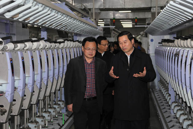 在永利yl23411新区,史和平主任认真听取集团公司董事长沈健宏等的情况汇报,询问了解企业生产经营情况、产业集聚整合情况、生产技术装备情况,并对集团“智能数字化纺纱车间”建设表示肯定。在生产车间,他边走边看,鼓励企业做强做优纺织、不断改革创新。考察过程中,他还鼓励企业走出去,积极参与江苏援疆援建工作,特别是参与到新疆霍尔果斯市的相关纺织项目建设中去。他对陈斌书记说:百年永利yl23411有生产优势、技术优势、管理优势,人才优势,我们欢迎百年永利yl23411这样的优势企业能够积极参与到相关援疆项目中来。企业走进新疆,除能享受国家及当地优惠政策外,我们省、市政府也将给予积极支持。